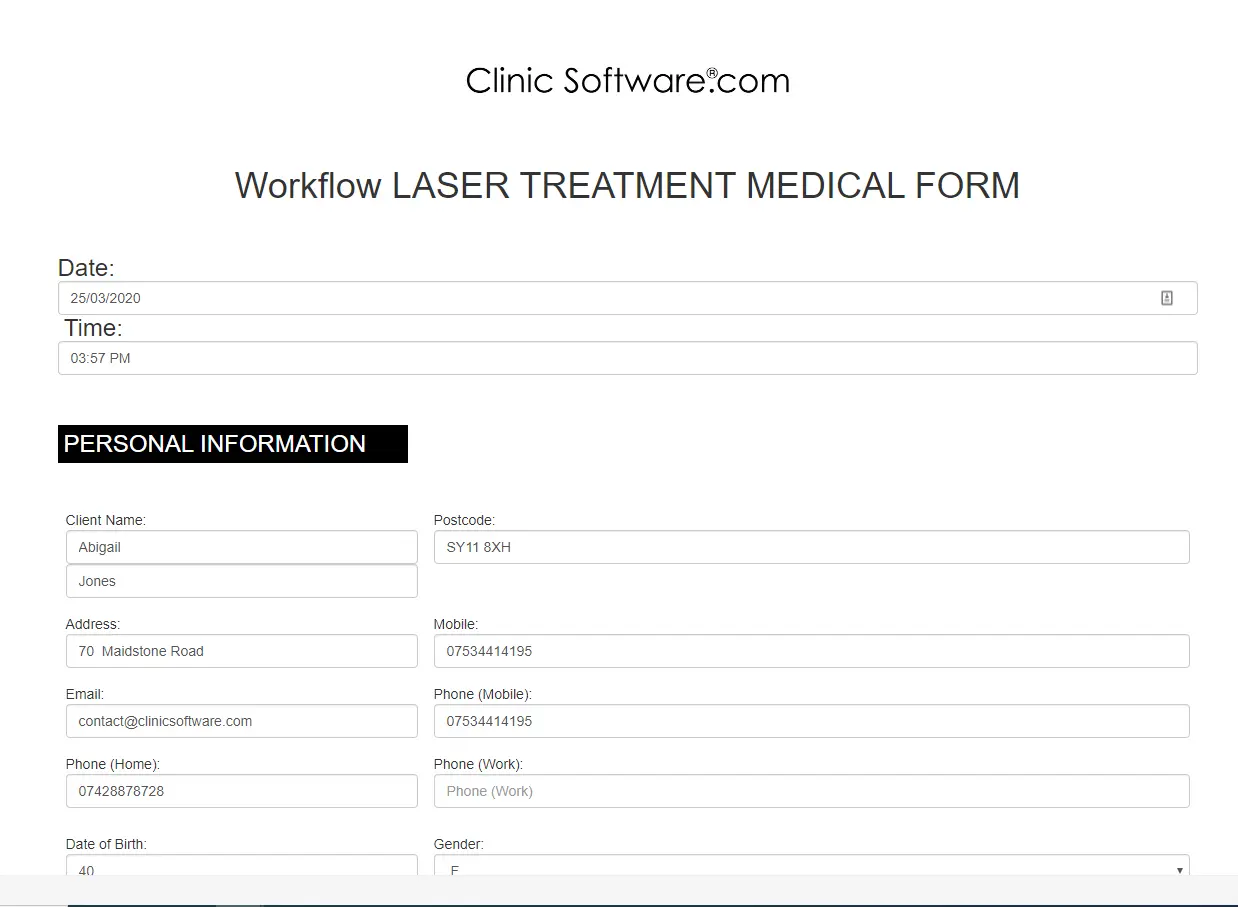 De workflow wordt geopend en u ziet alle persoonlijke informatie van uw cliënt. U kunt notities typen van de raadpleging van de cliënt.