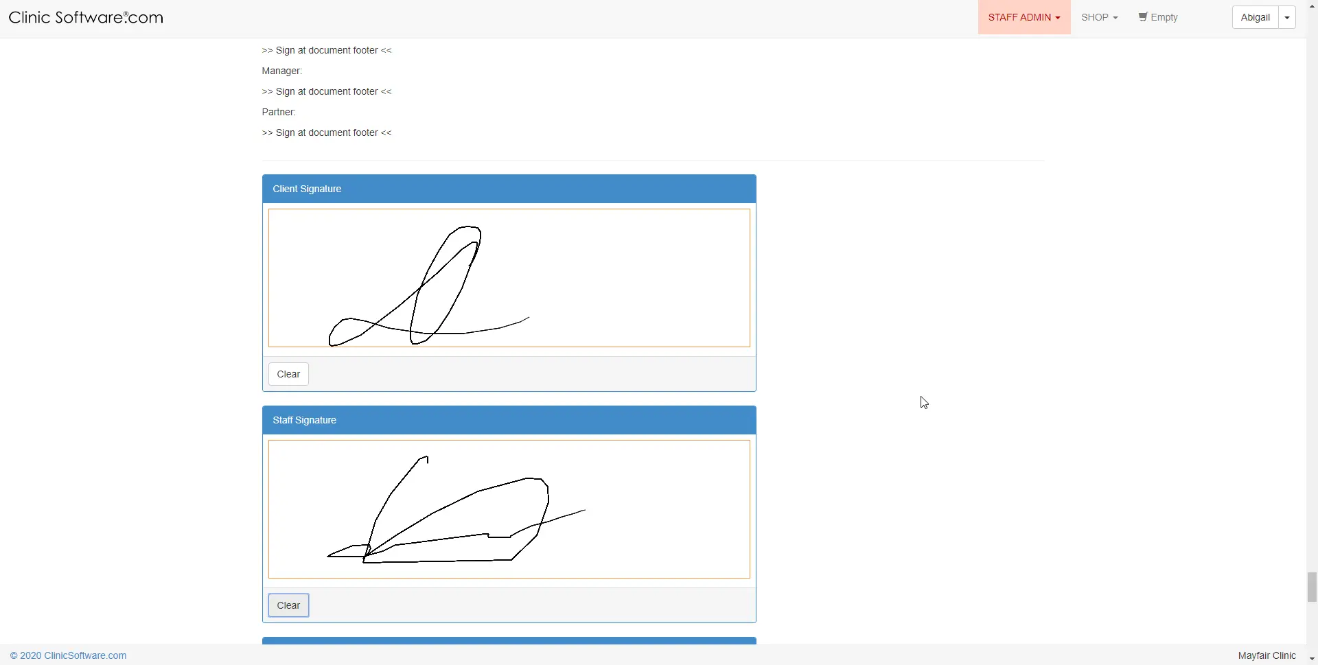 Verplichte handtekeningen van zowel de cliënt als het personeelslid.